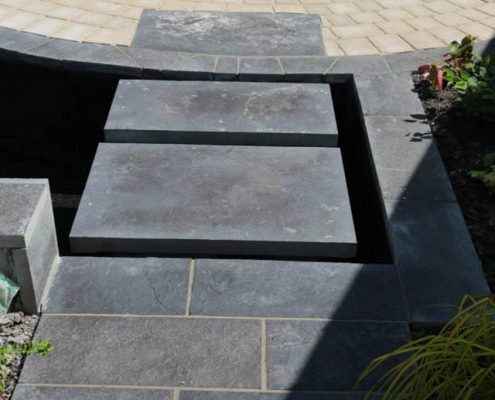 A contemporary water feature built near West Linton by Greenhart Landscaping.